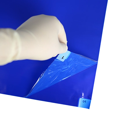 Our antistatic adhesive floor mats trap dirt, dust, and debris before it enters a cleanroom or controlled area. Each multi-layer tack mat contains 30 peel-off sheets. These layers capture contamination from footwear and trolleys, helping you maintain high hygiene standards.