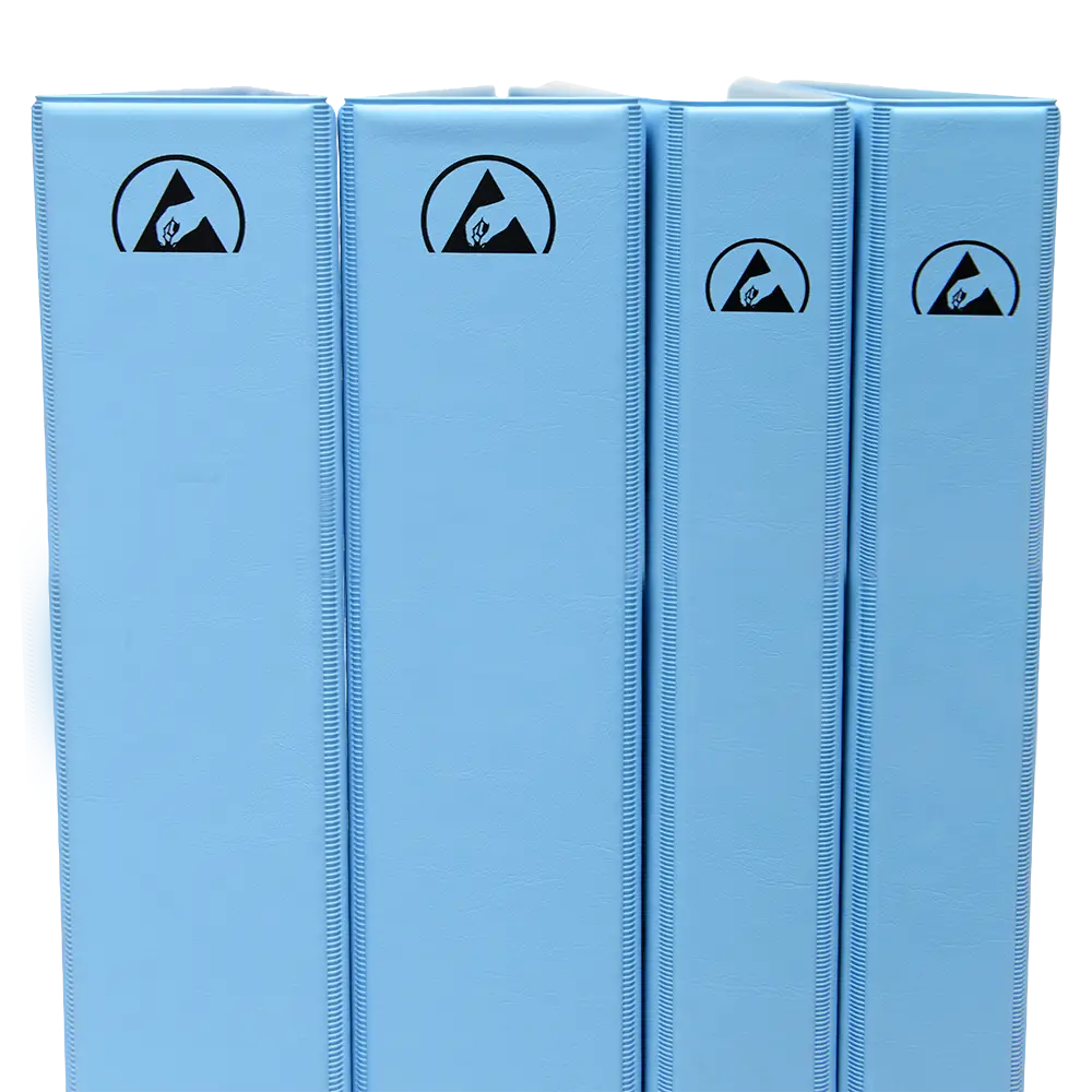 This ESD ring binder is specifically designed for use in electrostatic-protected areas, where conventional binders can generate static charges. Manufactured with a wipe-clean, permanently antistatic PVC cover, it provides reliable long-term protection for sensitive documents.