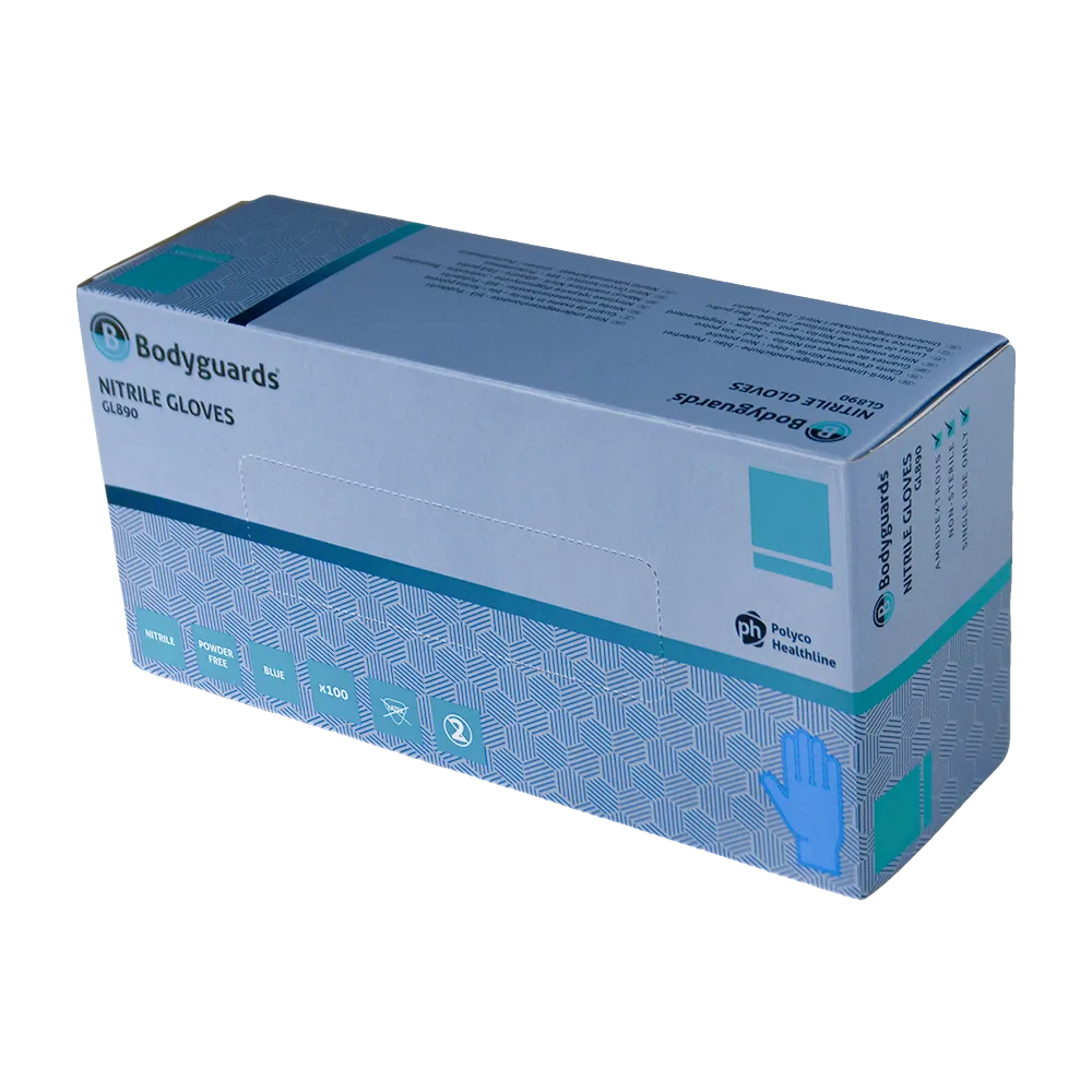 These POLYCO HEALTHLINE Bodyguards blue disposable nitrile gloves are powder-free and naturally antistatic, making them ideal for use in electronic assembly, manufacturing, and other sensitive environments. Designed as a safe alternative for those with latex allergies, they provide a reliable physical barrier without the risk of allergic reactions.