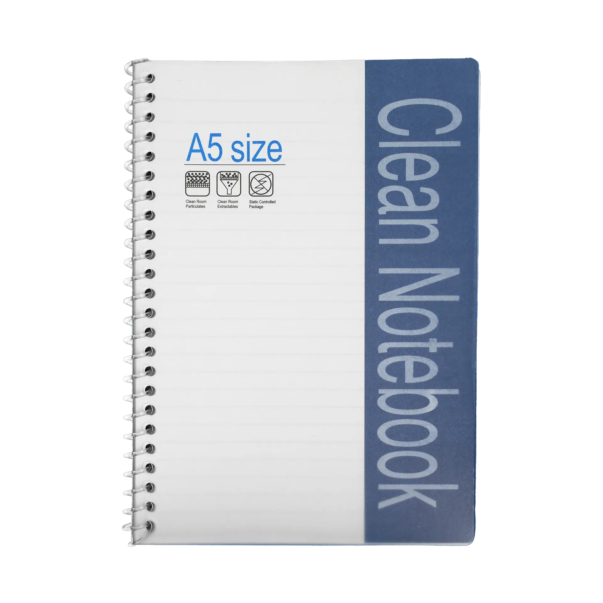 Spiral-bound lined notebook for ISO 5 cleanroom use