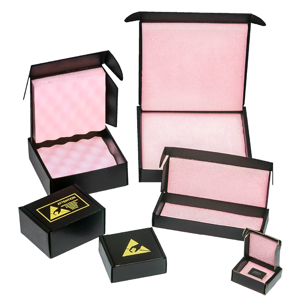 Conductive fibreboard boxes providing reliable ESD protection for sensitive components