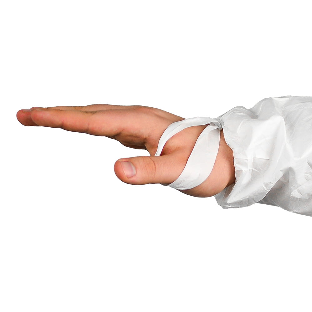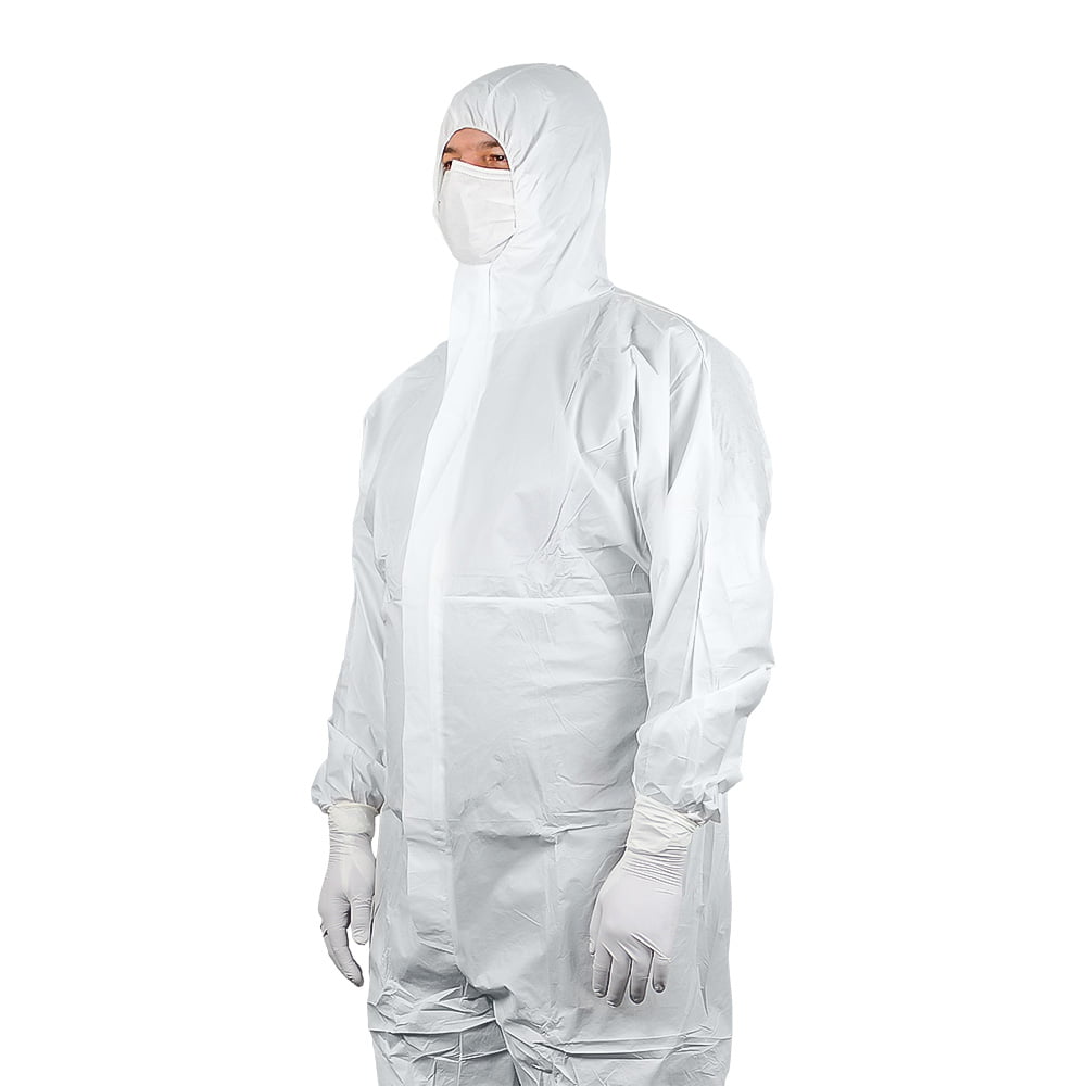 This white disposable coverall features an integrated hood, feet, and thumb loops for full body coverage. Made from a 60gsm lightweight, low-linting microporous material with spunbond polypropylene, it delivers excellent comfort, breathability, and moisture control.