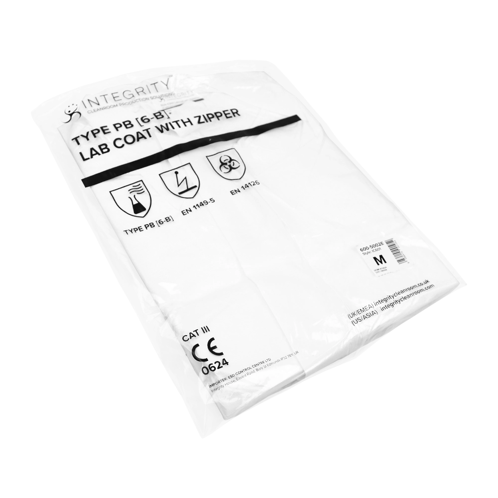 Certified CE Type PB [6-B], the coat offers protection against light chemical splashes, dust, and hazardous particulates. It is cleanroom compatible (ISO 6) and suitable for EPA environments, providing practical, low-linting protection in controlled areas.