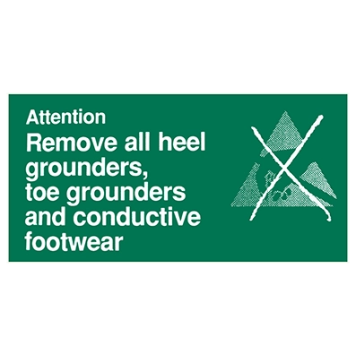 • “Attention: Remove all heel grounders, toe grounders and conductive footwear.”
