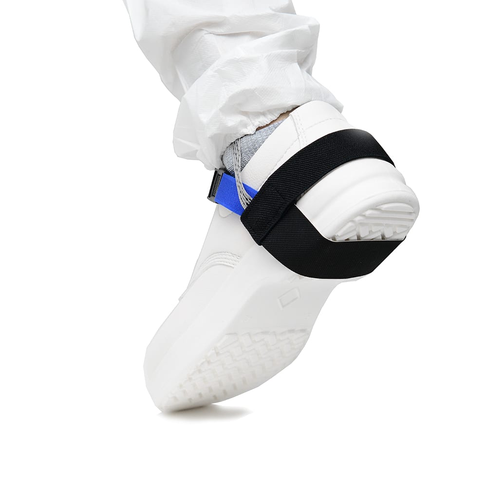 Made from hard-wearing materials, the heel straps are washable in mild detergent for long-term use and hygiene. They feature an outer conductive surface with a resistivity of 10³–10⁵ ohms, an inner antistatic surface of 10⁷–10⁸ ohms, and a conductive tab of 10³–10⁴ ohms, giving an overall resistivity of 10⁶ ohms. These straps conform to ANSI/ESD S20.20 and EIA 625 standards.