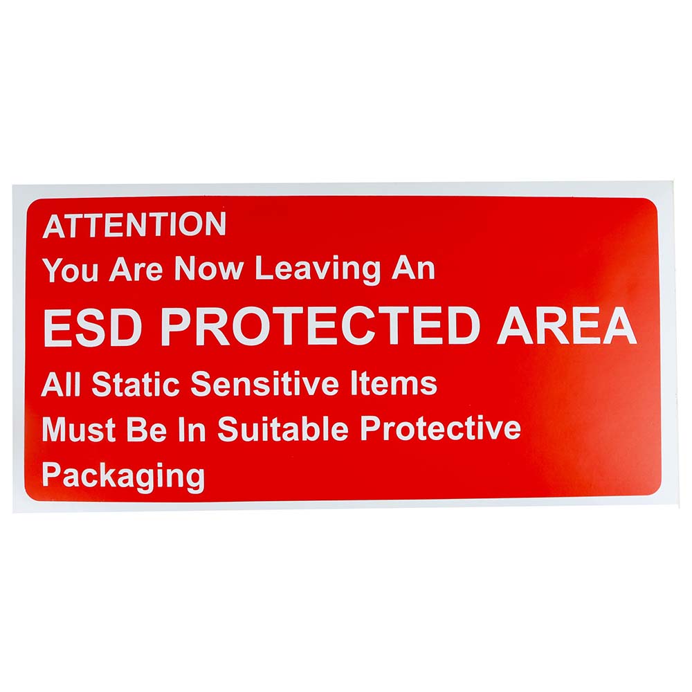 “ATTENTION – You are now leaving an ESD PROTECTED AREA – All static sensitive items must be in suitable protective packaging.”