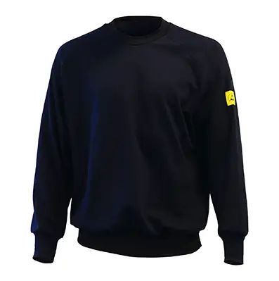 Featuring a round neck, ribbed cuffs, and an ESD logo on the arm for clear identification, this ESD sweatshirt is breathable, crease-resistant, and ideal for everyday use in ESD-sensitive environments. Fully compliant with EN 61340-5-1 standards, it is machine washable at 40°C, can be tumble-dried on low, and ironed up to 110°C. Avoid bleach, acids, alkalis, or fabric softeners to preserve electrical properties.