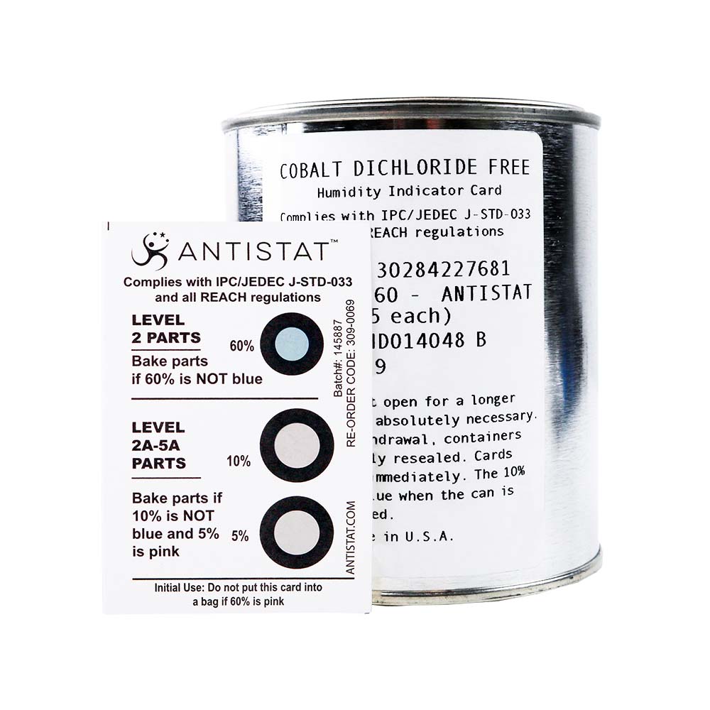 Cobalt Dichloride (CoClâ‚‚) free humidity indicator cards provide a cost-effective and environmentally safe solution for monitoring humidity levels within moisture barrier packaging. Designed specifically for use in the electronics and semiconductor industries, these cards are completely free from CoClâ‚‚, a regulated chemical under ECB REACH directives, while maintaining complete accuracy to JEDEC J-STD-033B standards.
