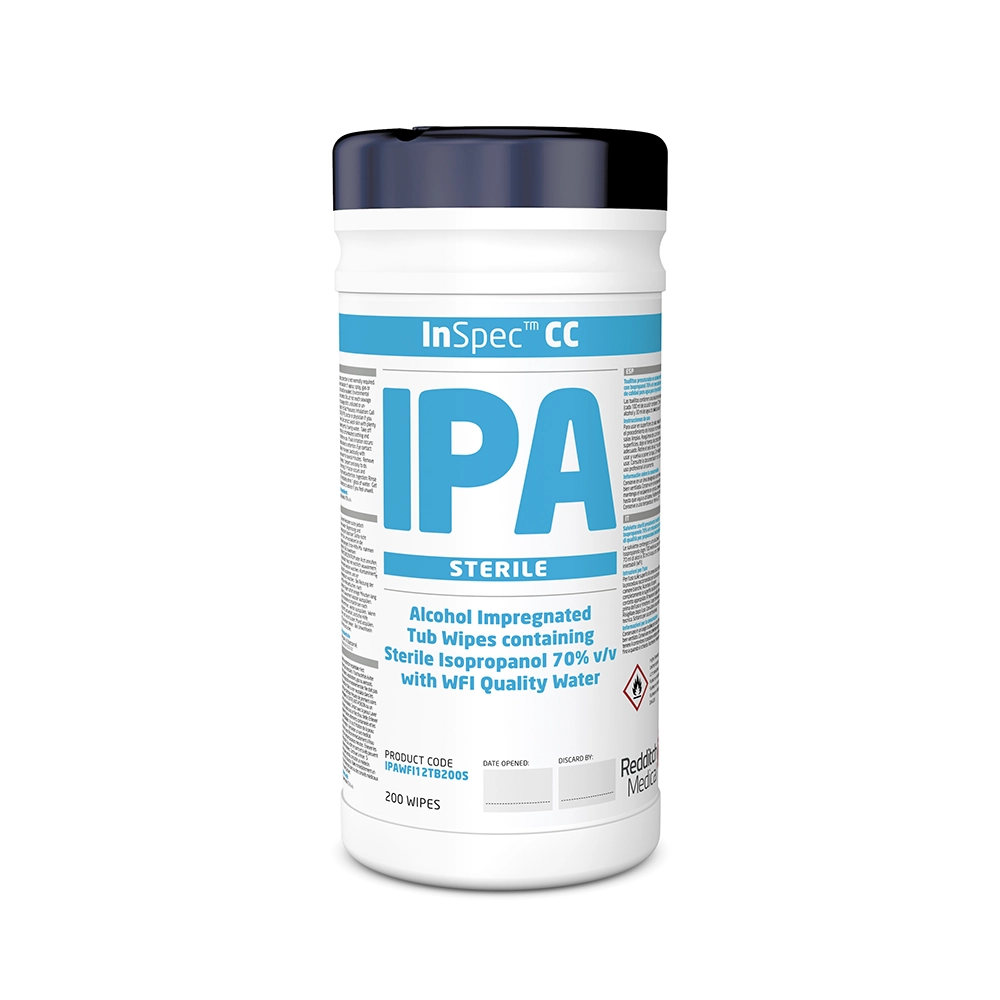 Filtered through a 0.2-micron filter and gamma irradiated to a validated process (25–45kGy), INSPEC™ IPA achieves a sterility assurance level (SAL) of 10⁻⁶. It is supplied with certificates of conformity and analysis, with sterile versions also supported by certificates of irradiation sterility and endotoxin. All IPA formats have a stabilised 24-month shelf life.