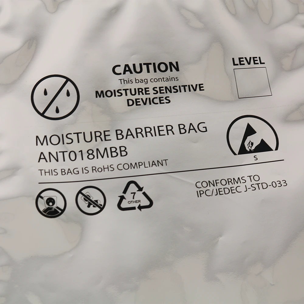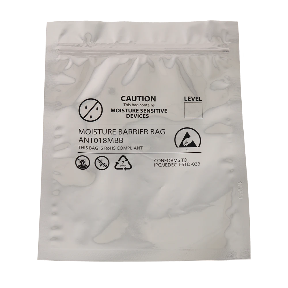 Our 3.6 mil (92 micron) antistatic moisture barrier bags are designed to protect sensitive electronic components from both electrostatic discharge and moisture ingress. These ESD moisture barrier bags are constructed using multiple layers of metal and polymer to deliver excellent shielding performance while preventing vapour penetration during storage and transportation.