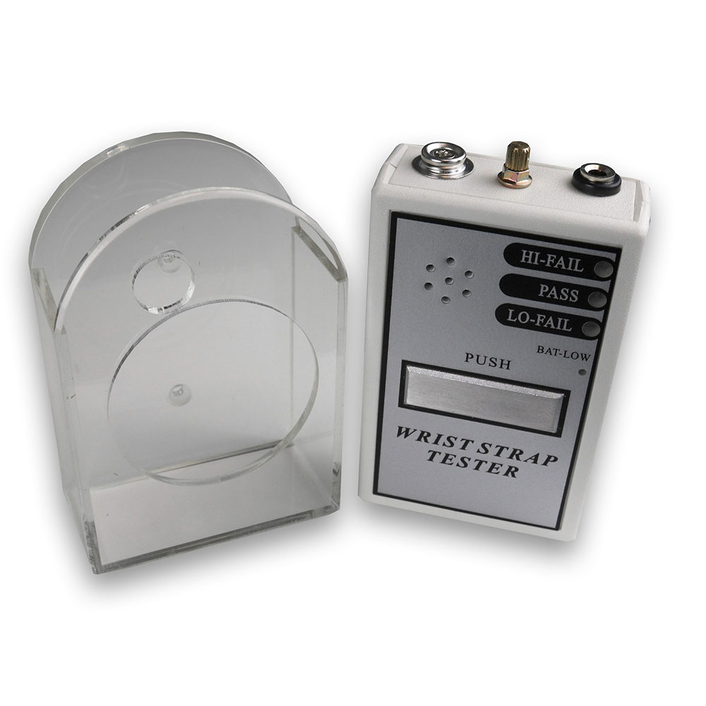 The ESD wrist strap tester is a complete personnel grounding test system designed to verify strap performance while it is still on the operator’s wrist. It ensures a continuous path between the operator, wrist strap, and ground cord is maintained, providing reliable protection in ESD-sensitive environments.